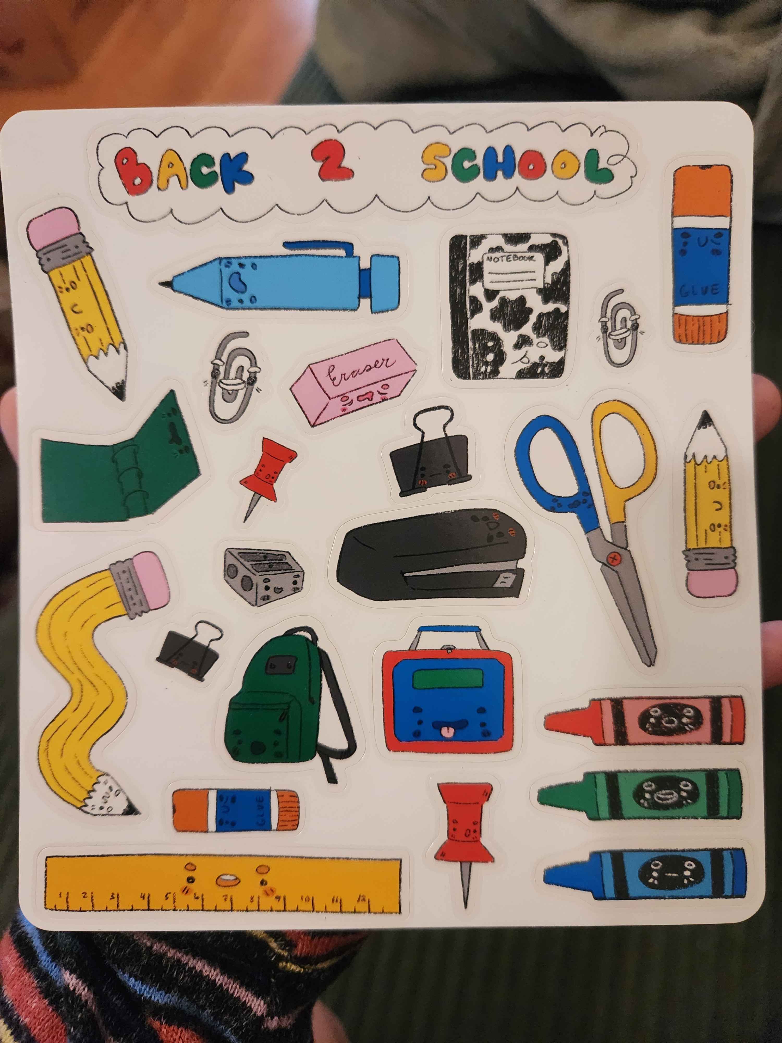 This sticker sheet of back to school supplies are weatherproof stickers. It contains cute and colorful stickers ready for your use!